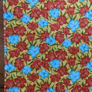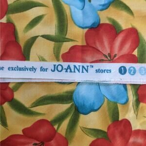 This is a piece of fabric - Watercolor Rose for Joann Fabric. Golden yellow background covered with blue and red flowers. Measures 42" wide and 30" in length.