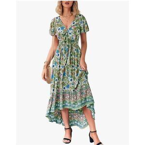 NEW Floral Maxi Dress Beach Flowy Tie Long Dress M