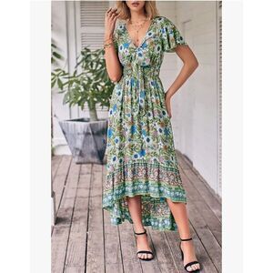 Flowy Womens Dresses: Soft and comfortable fabric helps this high low long dresses for women flow with body wonderfully; A floral boho maxi dress for women with flutter sleeves made of premium smooth material to give you the maximum comfort; The tie front sexy dresses for women with irregular hem is so summery to touch the new trend of PRETTYGARDEN floral print summer dresses for women 2023