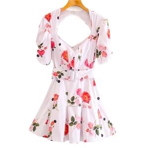 NEW! Floral & Polka Dot Belted Cut Out Back Mini Dress