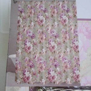 Beautiful Floral Shower Curtain & 12 Beaded Hooks / Rings Set