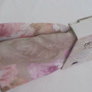 NEW Floral Shower Curtain Set with Roller Ball Beaded Rings Beige Floral Cottage