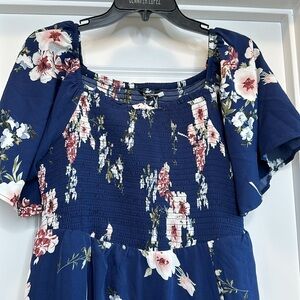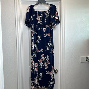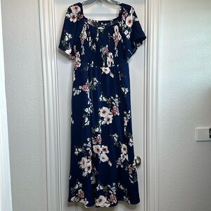 NWT!! Floral Square Neck Ruffles Pocket Shirred Split Dress Bloomchic