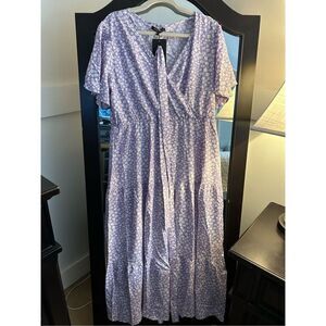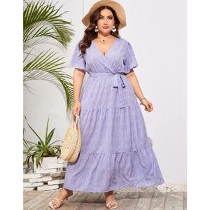 NEW Floral V Neck Wrap Maxi High Waist Ruffle Dress Belt 2X