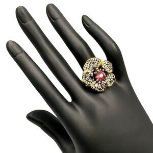 NEW Flower Cocktail Ring Sz.8 14K Black Gold Over S925 Silver Orchid Glam Fairy