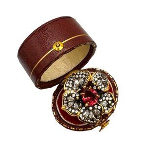 This gorgeous cocktail ring features a captivating orchid flower design of paved with clear cubic zirconia, and a large red pear cut natural zircon stone in the center of the flower. This unique ring is perfect for special occasion, events or as a gift.