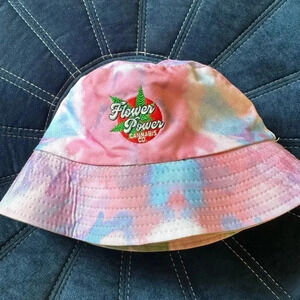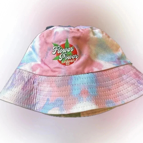 Show off your laid-back style with this vibrant Flower Power Cannabis Co. Bucket Hat. Crafted in a soft, breathable fabric, this hat features a striking tie-dye pattern in pastel pinks, blues, and purples, making it a perfect statement piece for any casual outfit. The classic bucket hat design offers both style and sun protection, ideal for festivals, beach days, or just adding a pop of color to your everyday look.
