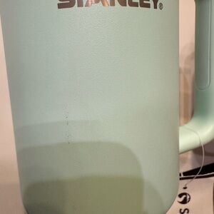 Stylish Stanley mug in light green. Keeps drinks at the right temperature. Durable and easy to carry.