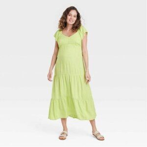 NEW Flutter Short Sleeve Woven Midi Maternity Empire Waist Dress - Isabel Maternity by Ingrid & Isabel - Green - Size Large