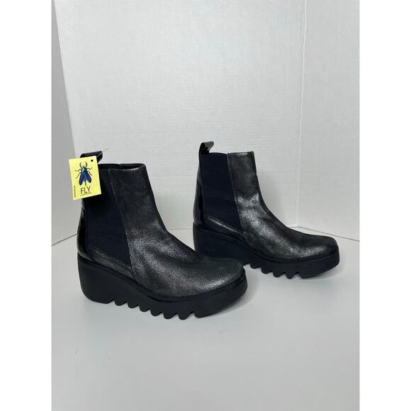 NEW Fly London Bagu Women's Black Suede Wedge Chelsea Boots Size 38