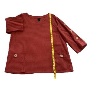 NEW Focus Casual Life Textured Pullover Top Size Med Rust Button Accent Pockets
