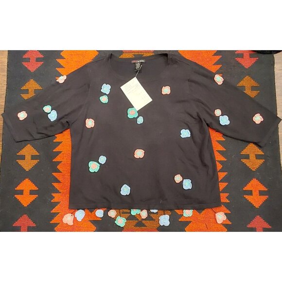 NEW Focus by Shani Women's Plus Size Black Sweater with Crochet Flowers. 2X