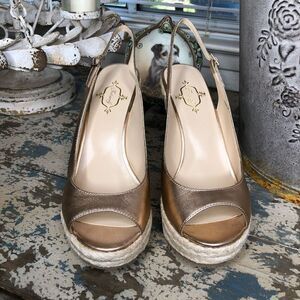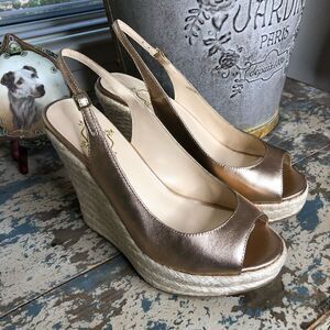 NEW Footcandy Costa Rica Rose Gold Coastal, Y2K Slingback Peep Toe Wedge