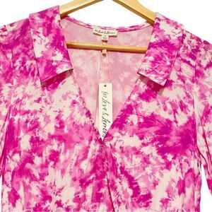 NEW For Love & Lemons Devon Shirt Pink & White Mini Dress Small