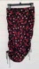- Skirt: Back zipper with hook and eye closure, adjustable ruched sides, unlined, asymmetrical hem, floral print