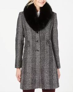 NEW Forecaster of Boston Fox-Fur-Collar Reefer Coat Black and White