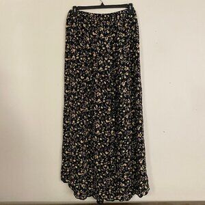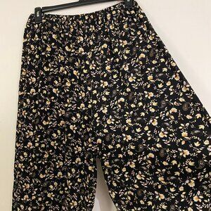 Beautiful black and cream, brown, yellow, orange floral high waisted pants with high slits going up the side of each leg