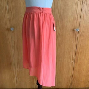 New with tag, coral color high low skirt, lined, concealed side zipper/hook closure, size small, no visible flaws