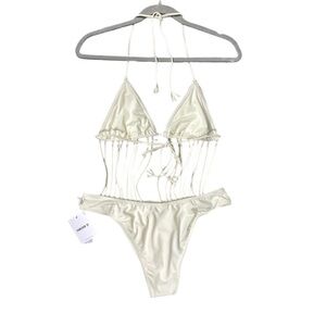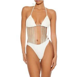 NEW Forever 21 Macrame One Piece Swimsuit Size XL Cream White