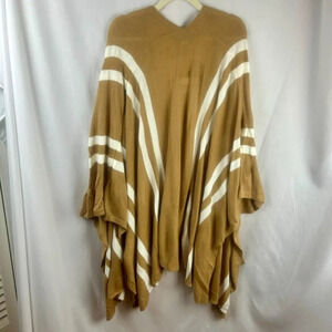 NEW Forever 21 Poncho Sweater Cardigan Women One Size Tan White Stripe Wrap Work