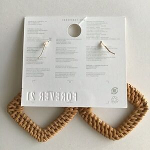 NEW Forever 21 Woven Rattan Earrings Wood Bead Light Triangle Dangle French Wire