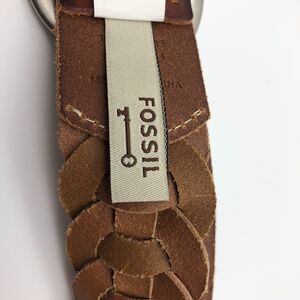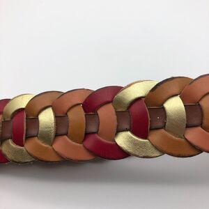 NEW Fossil Leather Belt Womens Size Small Woven Gold Brown Red Braided Boho