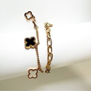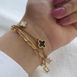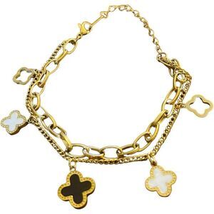 NEW Four Leaf Clover Gold Double Layer Charm Bracelet