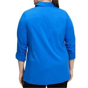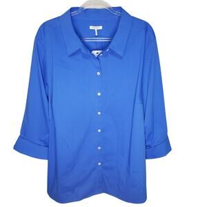 NEW Foxcroft 3x Evelyn Top 3/4 Sleeve Cobalt Blue Button Down No Iron Plus Size