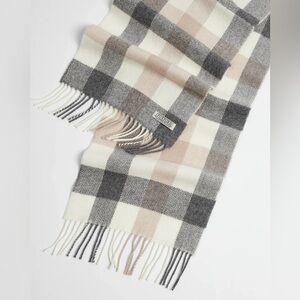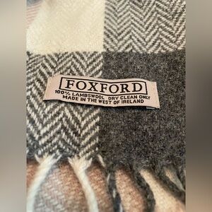 NEW Foxford Irish Lambswool Classic Check Print Light Rose Grey Cream Warm Scarf