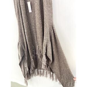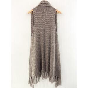 NEW Francesca's Boho Taupe Ribbed Knit Fringe Cardigan Sweater Vest One Size