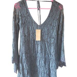 NEW Francesca’s Dress Blue Lace Long Trumpet/Bell Sleeve Lined Tunic NWT XS
