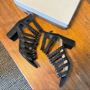 NEW Franco Sarto L-Paisley black Gladiator Block Heel Strappy Studded Shoes