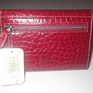 New with tag, Franco Sarto candy red leather croc design wallet. Tri fold with snap closure.