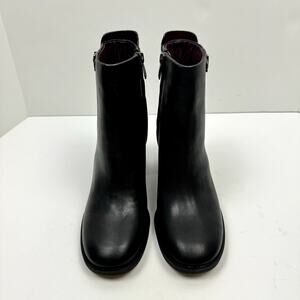 NEW Franco Sarto Rivet Black Leather Zip Up Chunky Block Heel Bootie Ankle Boot