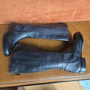 Franco Sarto Womens Black Leather Tahini Knee High Riding Boots 9.5 Equestrian Boho Preppy Countryside