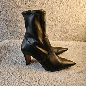 NEW Franco Sarto Women L-Avana Faux Leather Ankle Boots Pointed Toe Sz 10M Black
