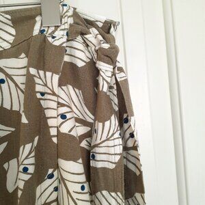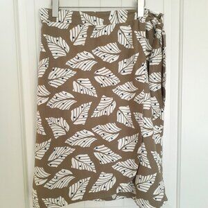 NEW Free Assembly Rayon Linen Wrap Skirt Leaf Print Brown White Size L