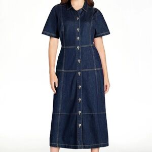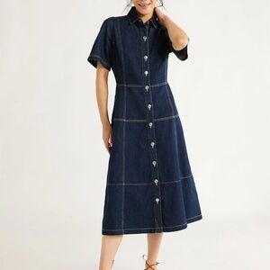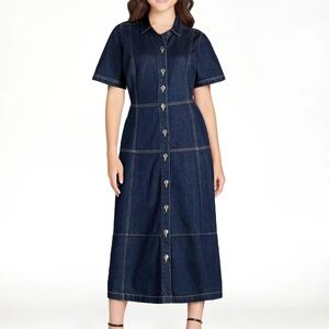 NEW Free Assembly Women's 100% cotton Denim Button Front Cotton Midi Dress L