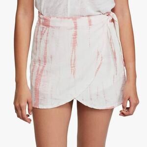 NEW Free People Ann Reed Tie-Dye Wrap Mini Skirt Pink/White Linen size 8