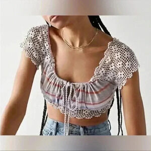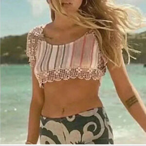NEW Free People Aruba Crochet Multicolor Striped Crop Top Sz S Style #OB1522759