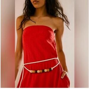 NEW Free People Beach Peyton Midi Strapless Dress in Red with Belt Size S