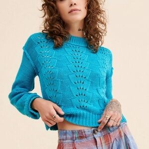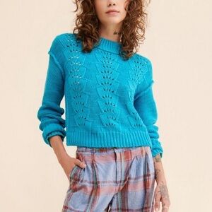 NEW Free People Bell Song Open Knit Pullover Sweater In Blue