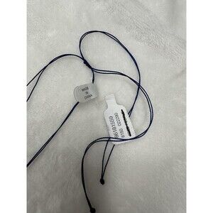 Strung on adjustable dark blue braided cord for custom length