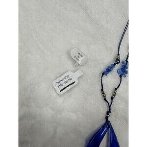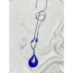 NEW Free People Blue Glass Teardrop Pendant Necklace Cord Silver Beads Metallic