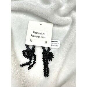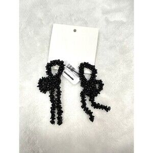 NEW Free People Brandy Bo Dangles Beaded Bow Earrings In Black Funky Sweet Woven