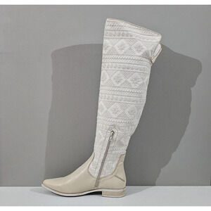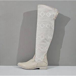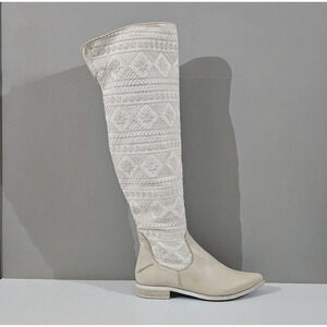 NEW Free People Bren Knee High Boot Women EU 39.5 Cream Embroidered Slouchy Boho