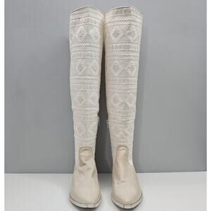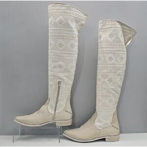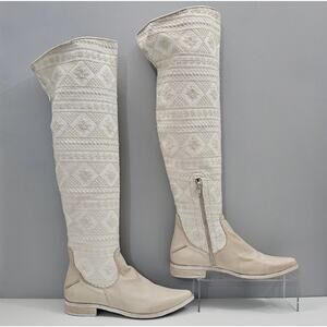 NEW Free People Bren Knee High Boot Womens EU 38 Cream Embroidered Boho Slouchy