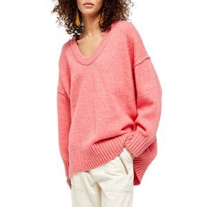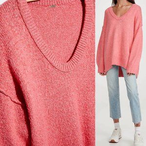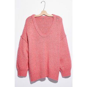 NEW Free People Brookside Tunic Oversized Knit Sweater Pink Lightning $128 M
