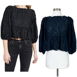 NEW Free People | Callie Puff Sleeve Flocked Open Tie Back Peplum Crop Top XS NWT