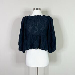 NEW Free People | Callie Puff Sleeve Flocked Open Tie Back Peplum Crop Top XS